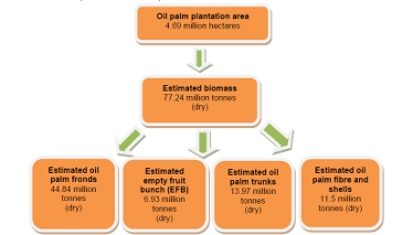 addition, the oil palm estates produce an estimated 80 Mmtons of dry weight biomass. This includes trunks, fronds, empty fruit bunches and other biomass fractions. These resources present attractive raw materials for the newly emerging and potentially profitable renewable energy and biobased chemicals markets1. The perennial nature of the oil palm biomass supply base and the available volumes are strong assets to tap into these new markets. This paper describes the potential of the biomass markets and highlights some of the answers to the challenges these markets currently present to the oil palm biomass industry.