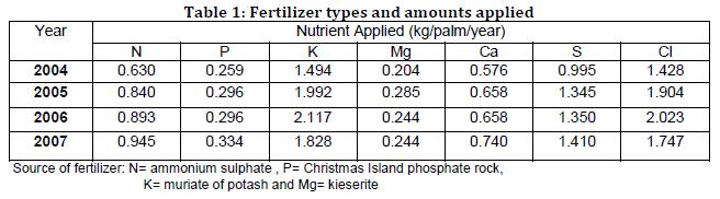 Soil pH, organic C and total N decreased with time in the oil palm agro-ecosystem. However, the decline in soil pH was slight whereas those related to organic C and total N corresponded to the period when the oil palm biomass was burnt or partially burnt at replanting. The large increases in soil organic C obtained with the zero burn replanting technique were favorable. There were large positive changes in soil P and exchangeable K, which might be attributed to the applications of higher rates of phosphate rocks and K fertilizers especially from the 1990s following the results of fertilizer response trials. Exchangeable Mg were lower in burn or partial burn areas but were higher in zero burn areas. This study by Mitra Usaha Pertanian shows that the soil fertility status of the Ultisols under oil palm in Johor has been enhanced through current fertilizer management practices and zero burn replanting technique.